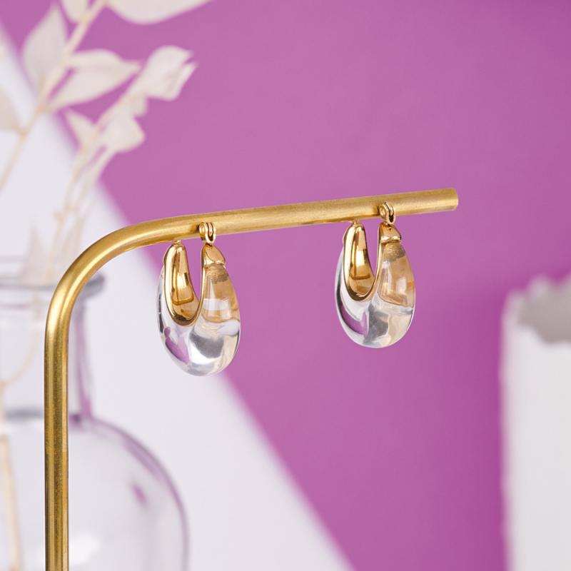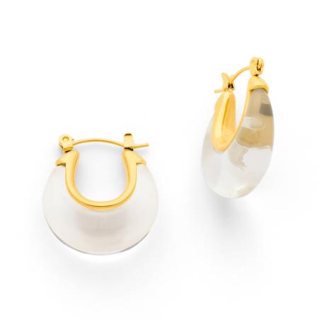 Créoles acier doré avec résine transparente diamètre 25 mm