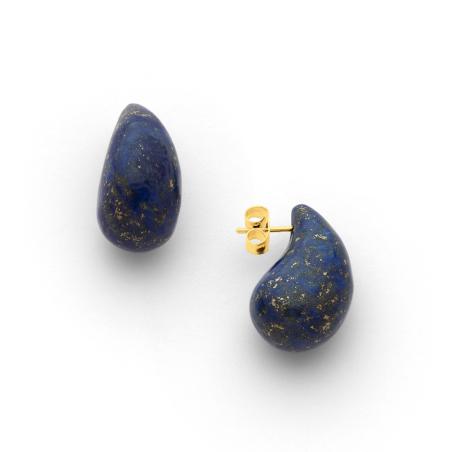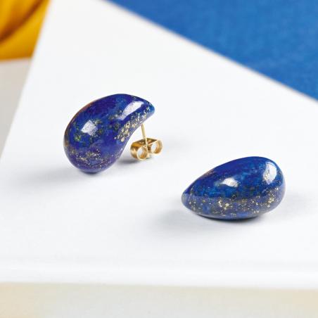 Boucles d'oreilles acier doré avec lapis-lazuli