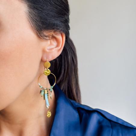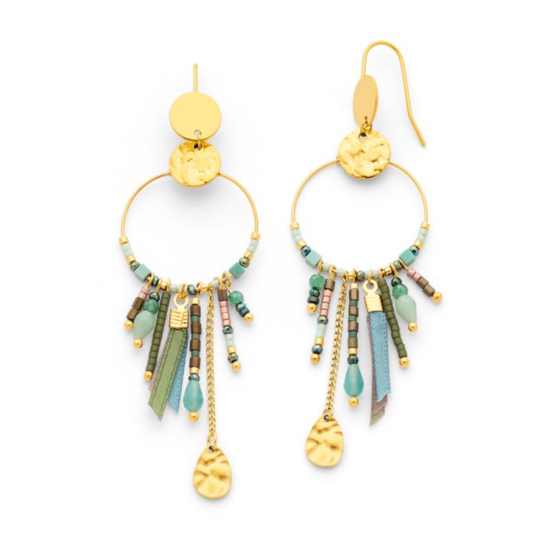 Boucles d'oreilles acier doré avec miyuki, hématite et zirconias