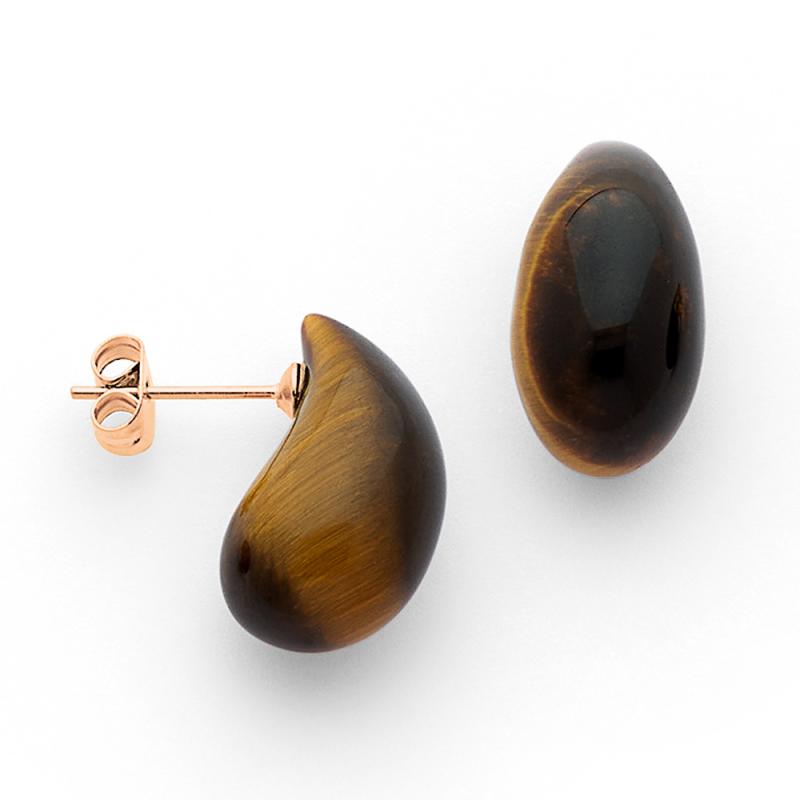 Boucles d'oreilles acier rose avec oeil de tigre