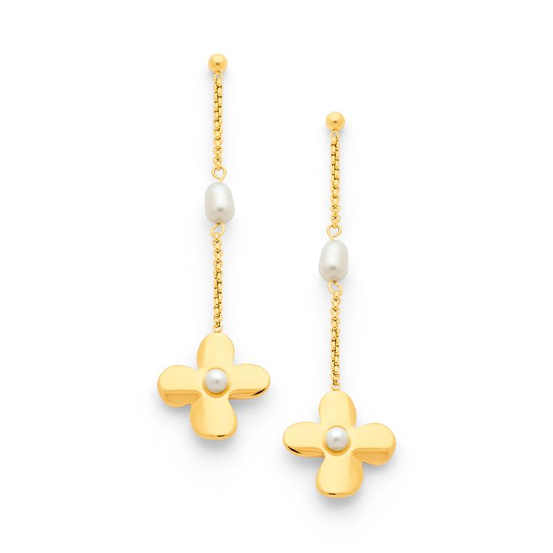 Boucles d'oreilles acier doré avec perle de culture et verre nacré