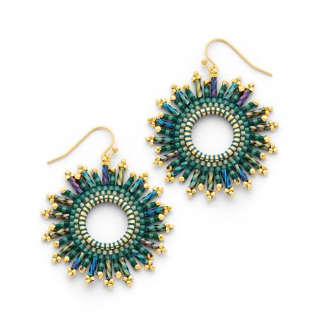 Boucles d'oreilles acier doré avec verre teinté et miyuki