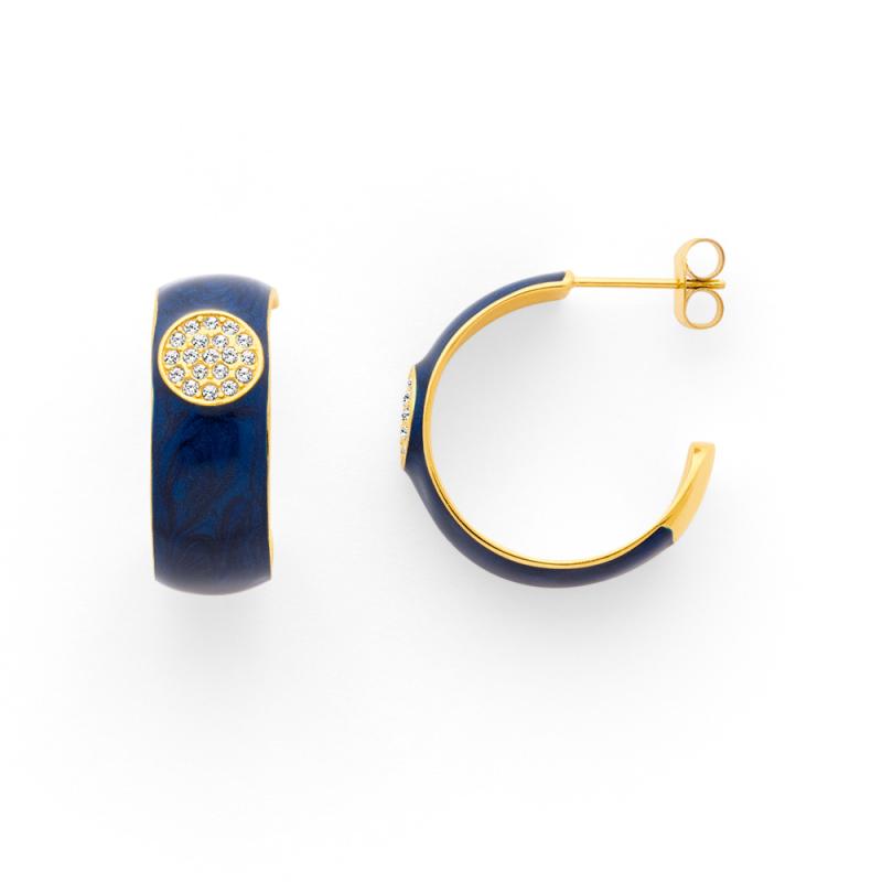 Créoles acier doré avec émail et zirconias