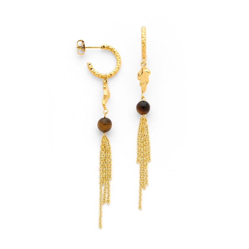 Créoles acier doré avec oeil de tigre diamètre 20 mm