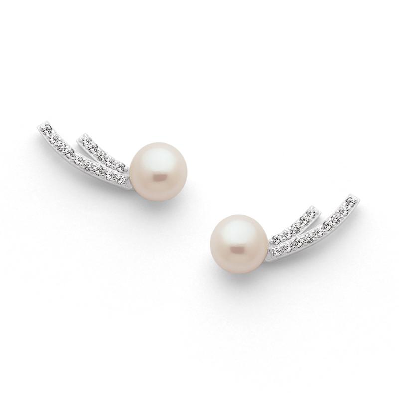 Boucles d'oreilles argent avec perles de culture et zirconias