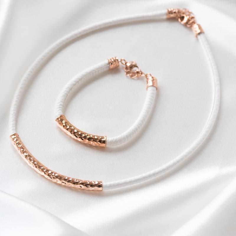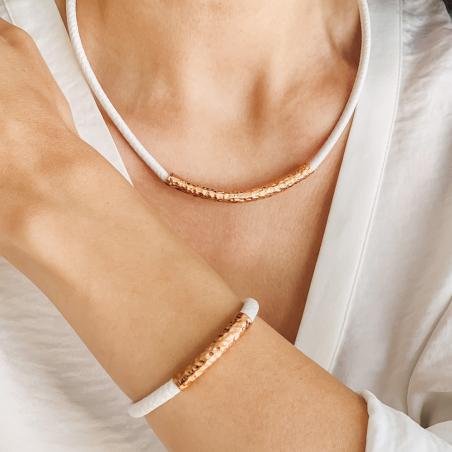 Bracelet acier rose imitation cuir réglable de 18 à 21 cm