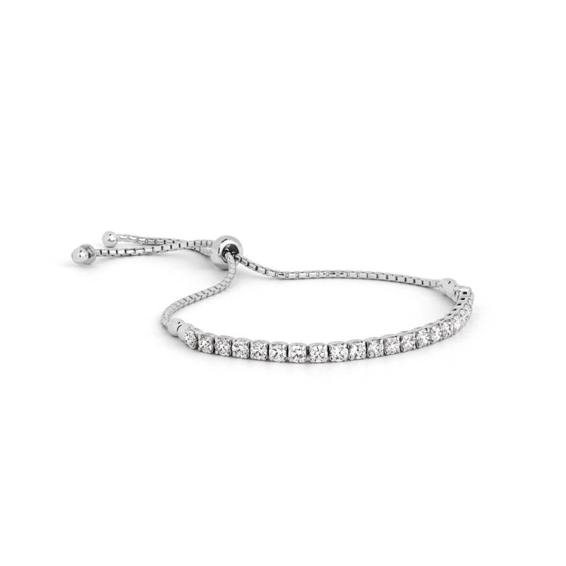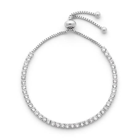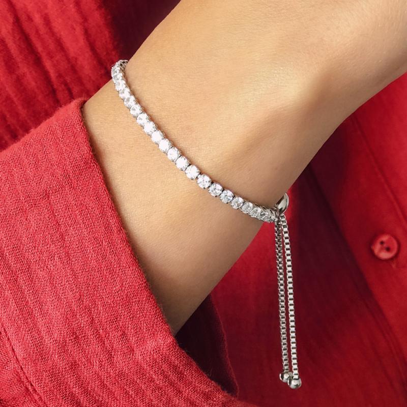 Ajoutez une touche de sensualité et de glamour à votre style classique en portant ce bracelet en acier agrémenté d'une rangée de zirconias brillants. Ce bracelet offre un design particulier avec sa petite chaîne vénitienne et son fermoir coulissant. Vous pouvez facilement adapter la longueur de ce bijou au tour de votre poignet.