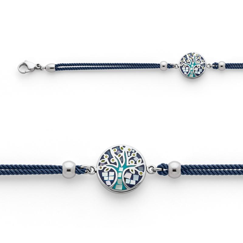 Choisissez ce bracelet de la collection Baobab composé d'un cordon en coton bleu et d'un motif en acier, nacre et émail bleu représentant un baobab. Ce bracelet vous apportera une note de fraîcheur et de légèreté dans votre quotidien. Vous pouvez ajuster le cordon en fonction de la taille de votre poignet, de 16 à 20 cm.