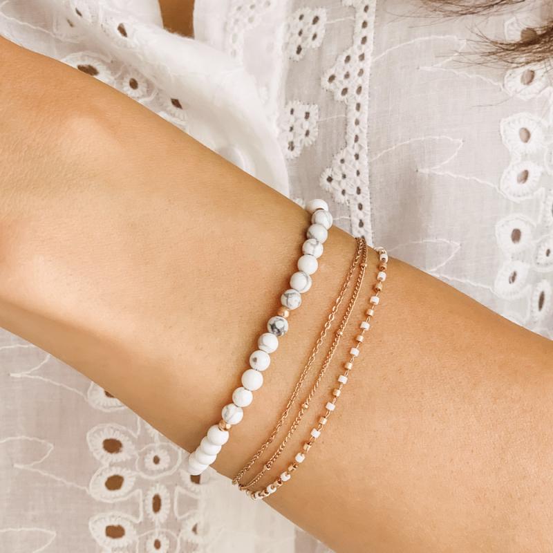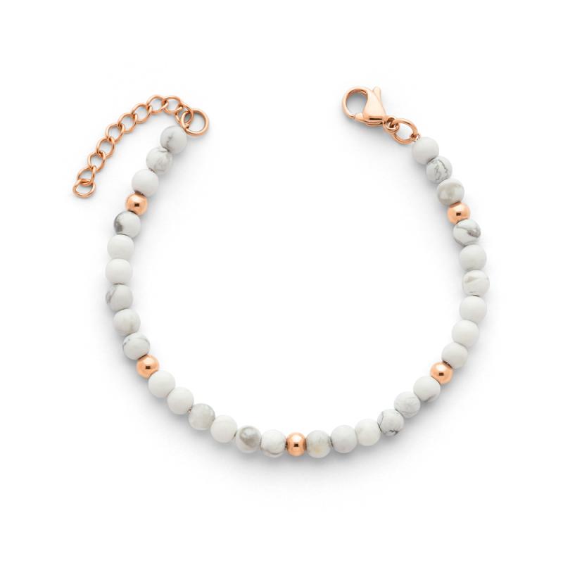 Bracelet acier rose avec howlite réglable de 16 à 19 cm