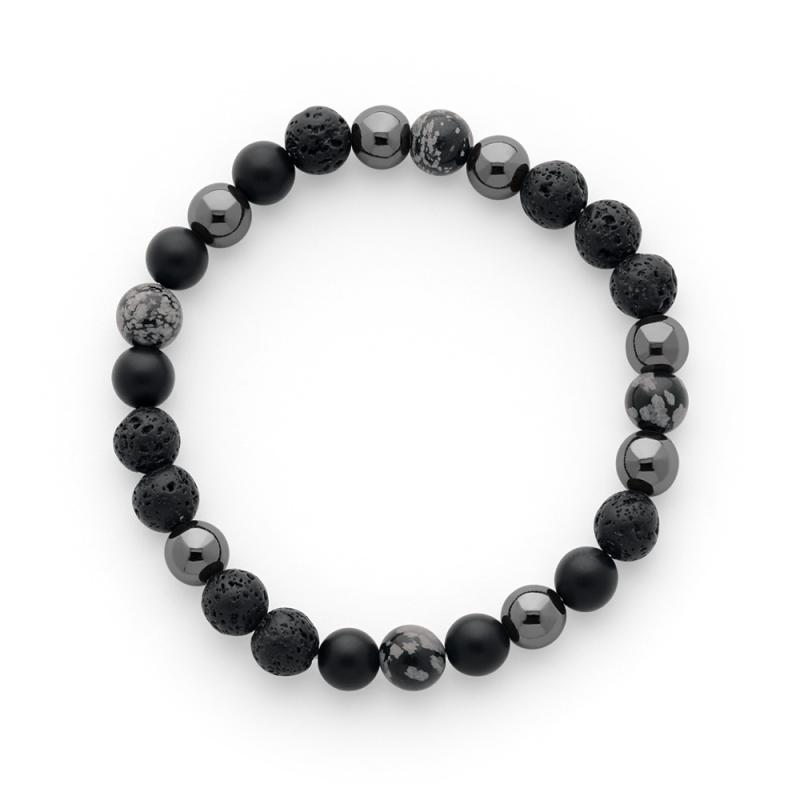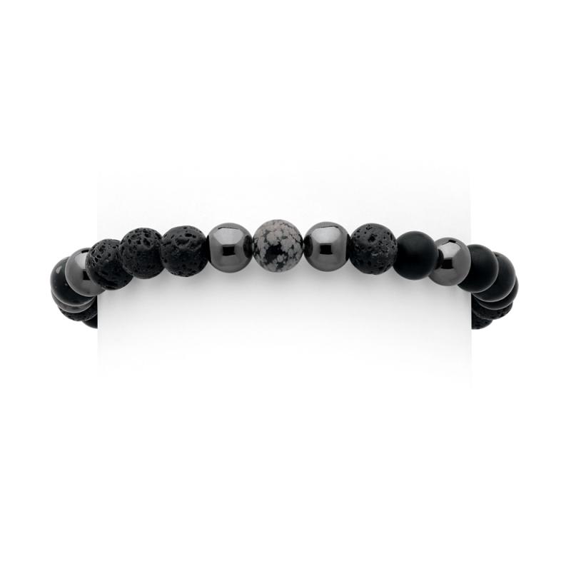 Bracelet élastique avec hématite, onyx mat et pierre de lave