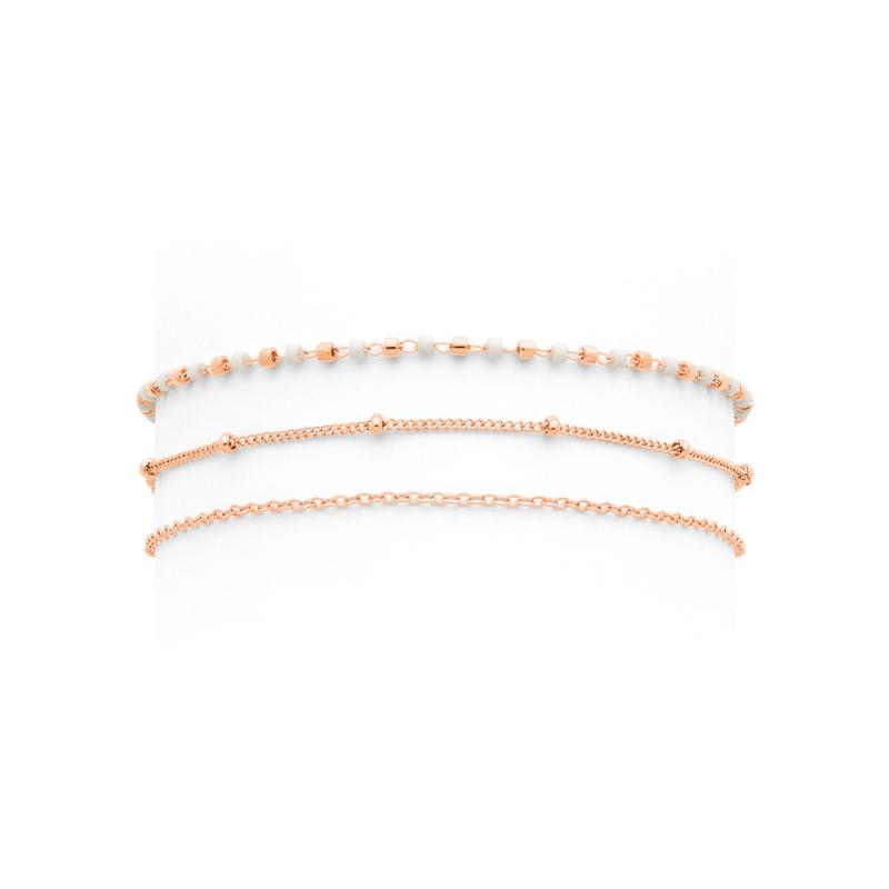 Bracelet triple acier rose avec miyuki réglable de 16 à 19 cm