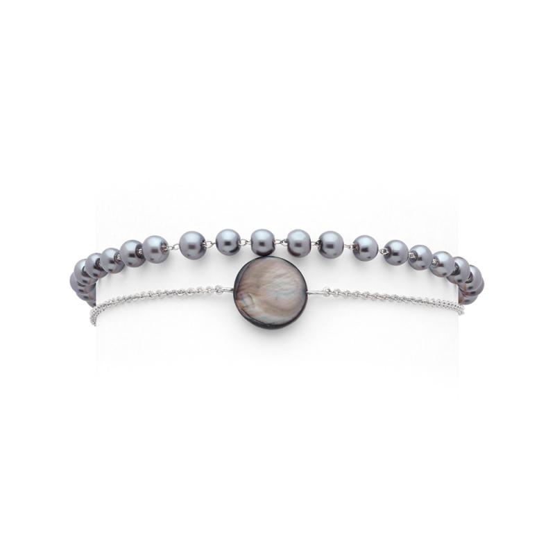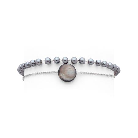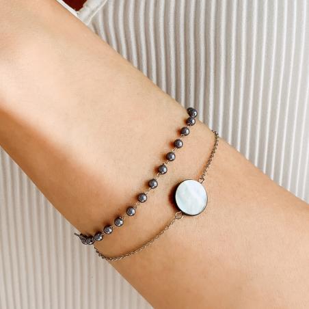 Bracelet acier avec nacre grise et verre nacré réglable de 16 à 19 cm