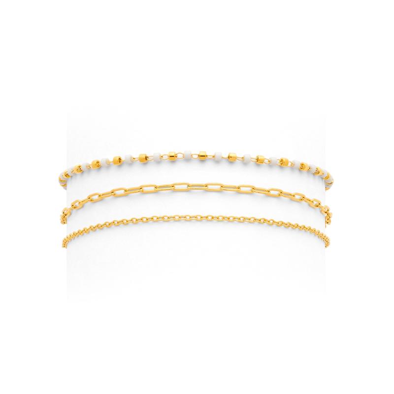 Bracelet triple acier doré avec miyuki réglable de 16 à 19 cm