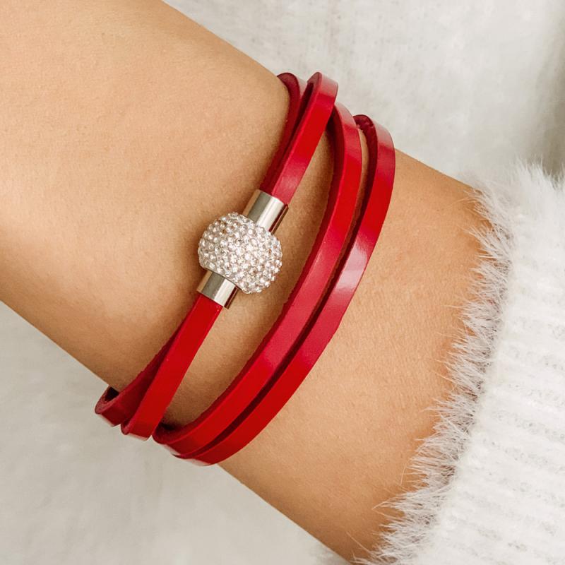 Bracelet acier avec croûte de cuir et cristal 19.5 cm