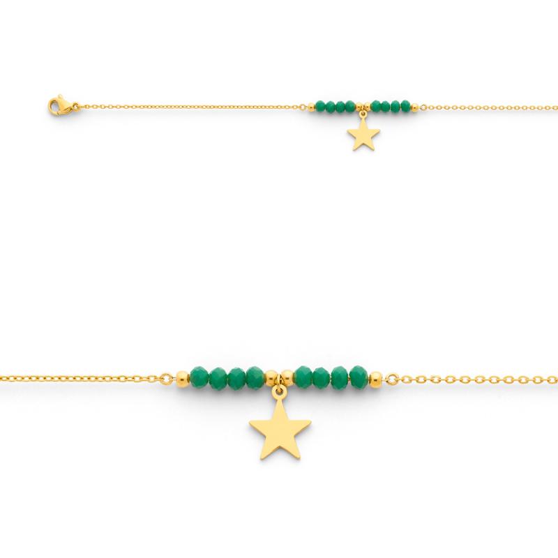 Bracelet acier doré avec cristal réglable de 16 à 19 cm