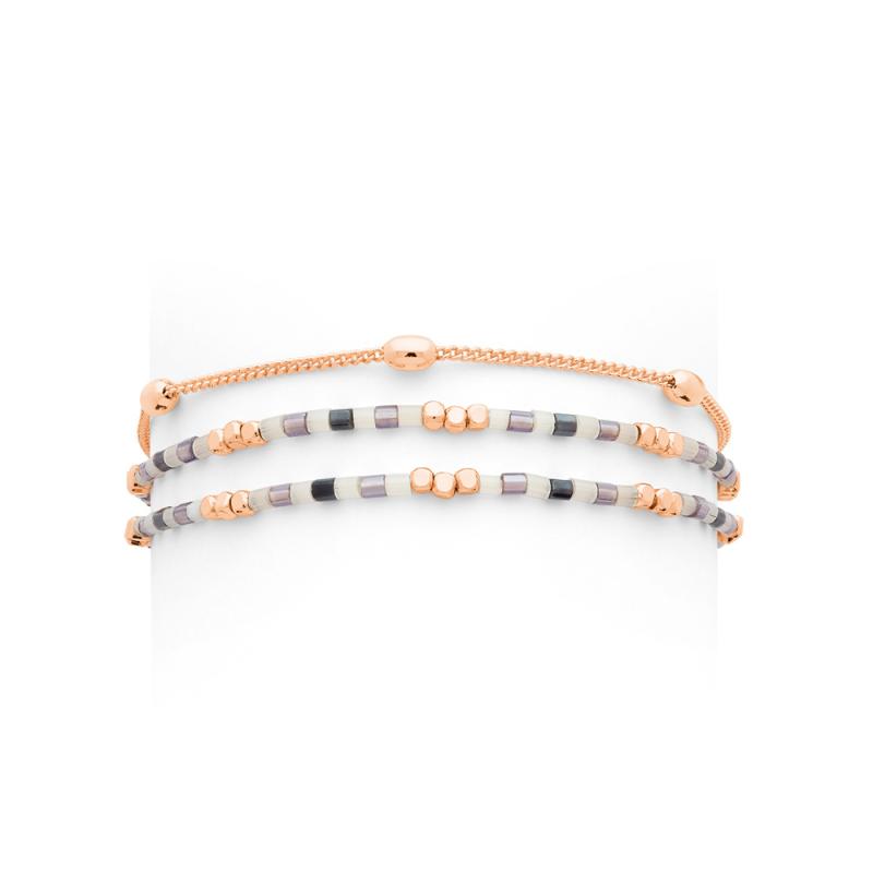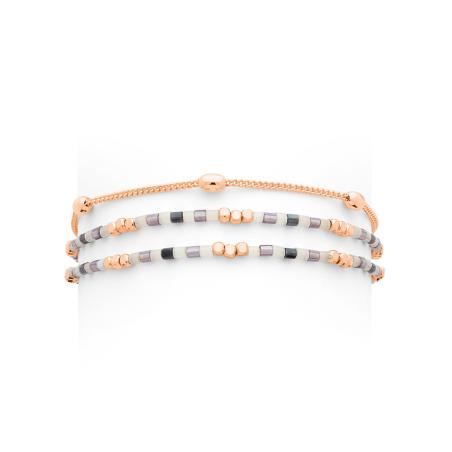 Bracelet triple acier rose avec miyuki réglable de 16 à 19 cm
