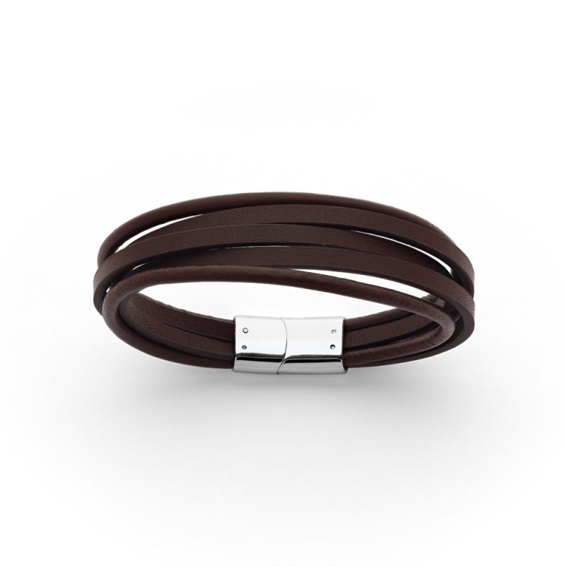 Bracelet acier avec croûte de cuir réglable de 20,5 à 21,5 cm