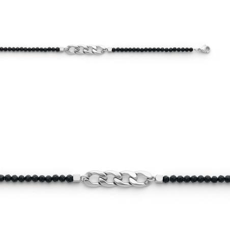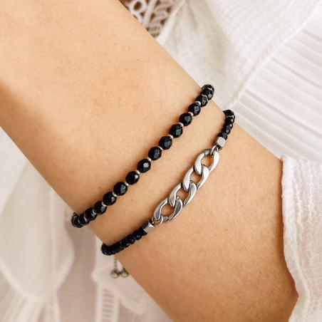 Bracelet acier avec agate noire réglable de 16 à 19 cm