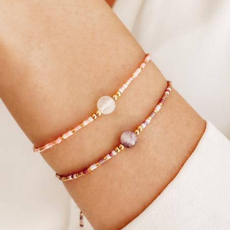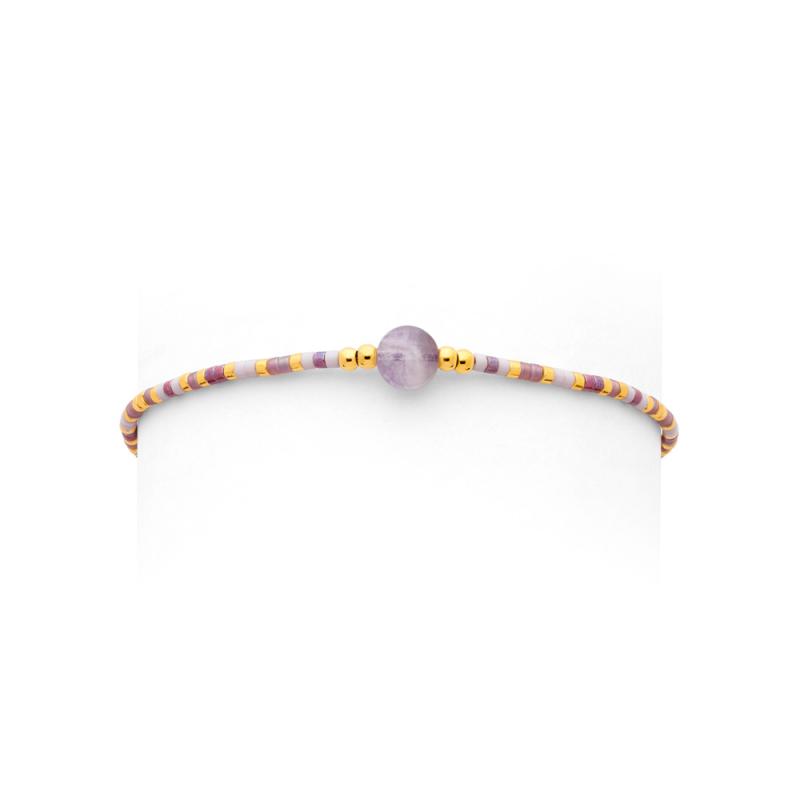Bracelet acier doré avec améthyste et miyuki réglable de 16 à 19 cm
