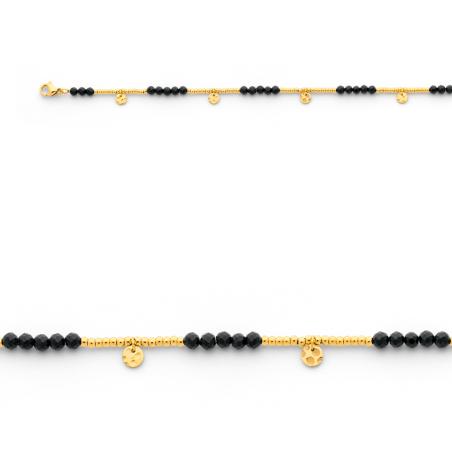 Bracelet acier doré avec agate noire réglable de 16 à 19 cm