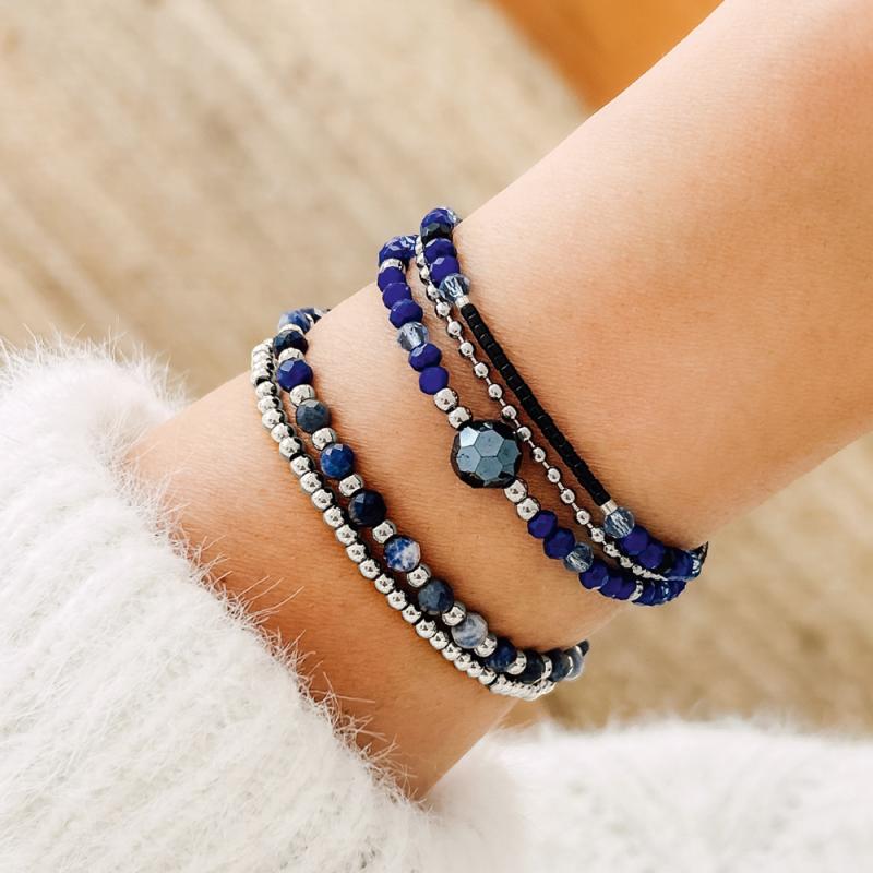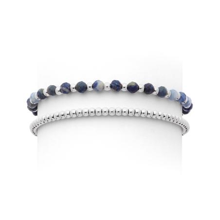 Bracelet double acier avec blue vein stone sur élastique