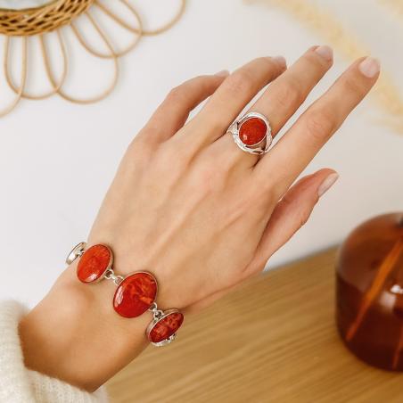Bracelet argent corail gorgogne réglable de 15,5 à 19 cm