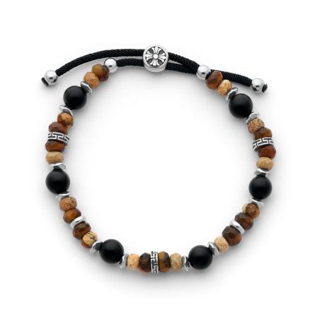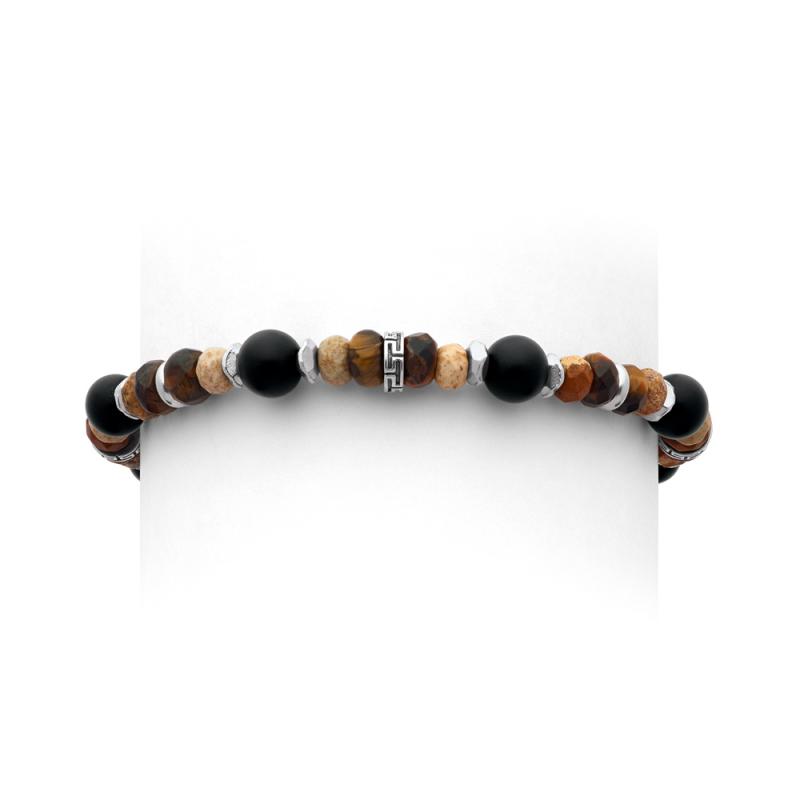 Bracelet acier avec agate noir mate,oeil de tigre et picture stone