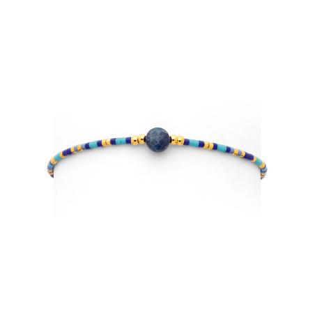 Bracelet acier doré avec lapis et miyuki réglable de 16 à 19 cm