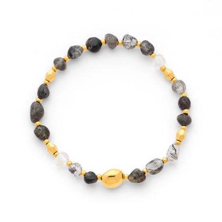 Bracelet acier doré avec quartz rutilé sur élastique
