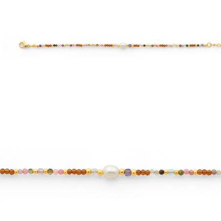 Bracelet acier doré, tourmaline, fluorite réglable de 16 à 19 cm