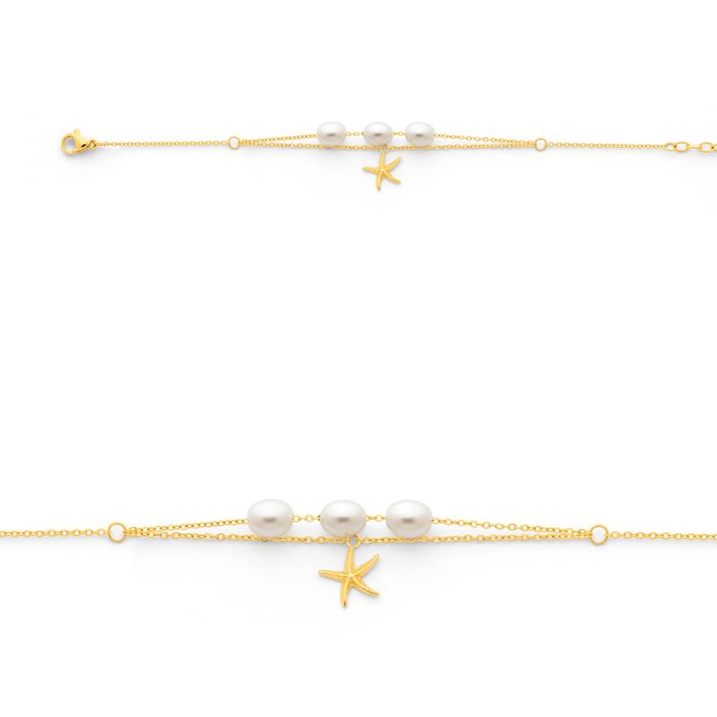 Bracelet acier doré avec perle d'eau douce réglable de 16 à 19 cm