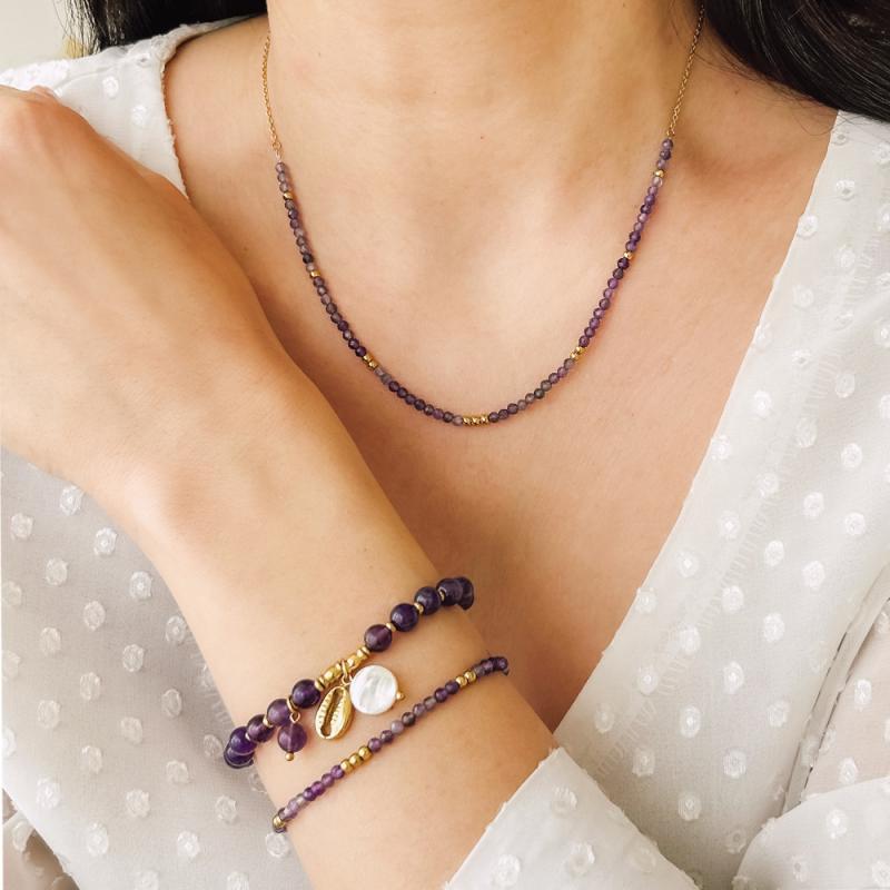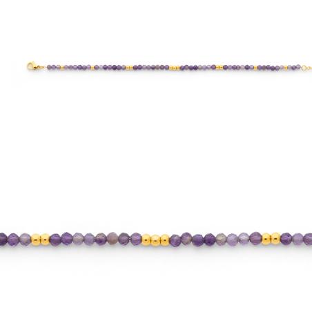 Bracelet acier doré avec améthyste réglable de 16 à 19 cm