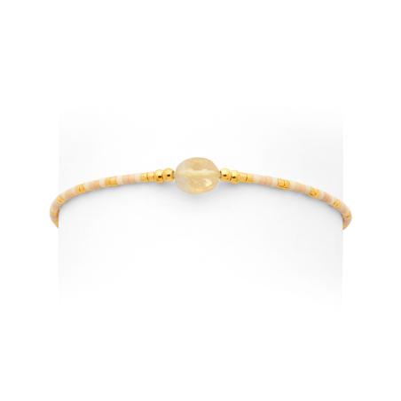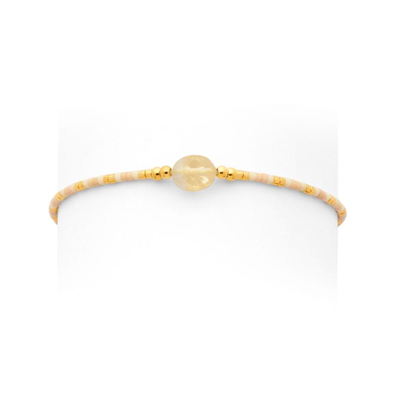 Bracelet acier doré miyuki et quartz jaune réglable de 16 à 19 cm