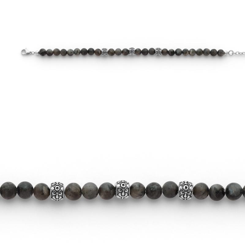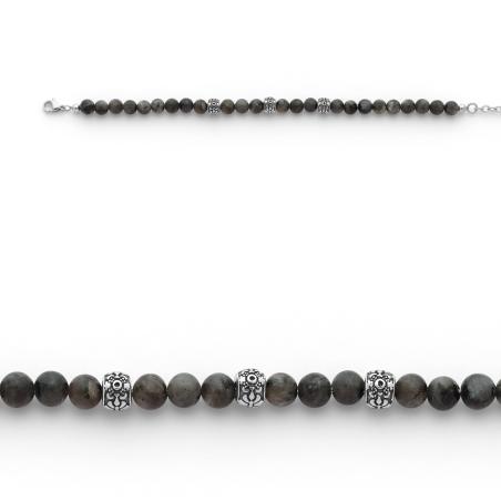 Bracelet acier avec labradorite réglable de 19 à 21 cm