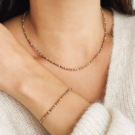 Bracelet acier doré, pierre de soleil et zirconias réglable 16 à 19cm