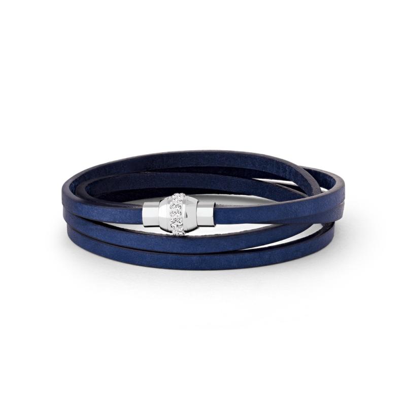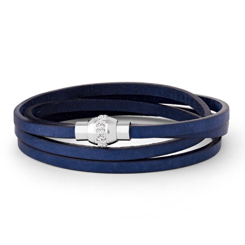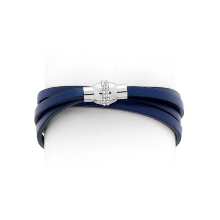 Pour compléter votre tenue au quotidien, optez pour ce bracelet pour femme de la collection Célébration. En cuir véritable, ce bracelet double tour de 39 cm de couleur bleu marine apportera une touche de gaieté à votre tenue. Son fermoir aimanté en acier inoxydable est surmonté de petites pierres de cristal étincelantes.