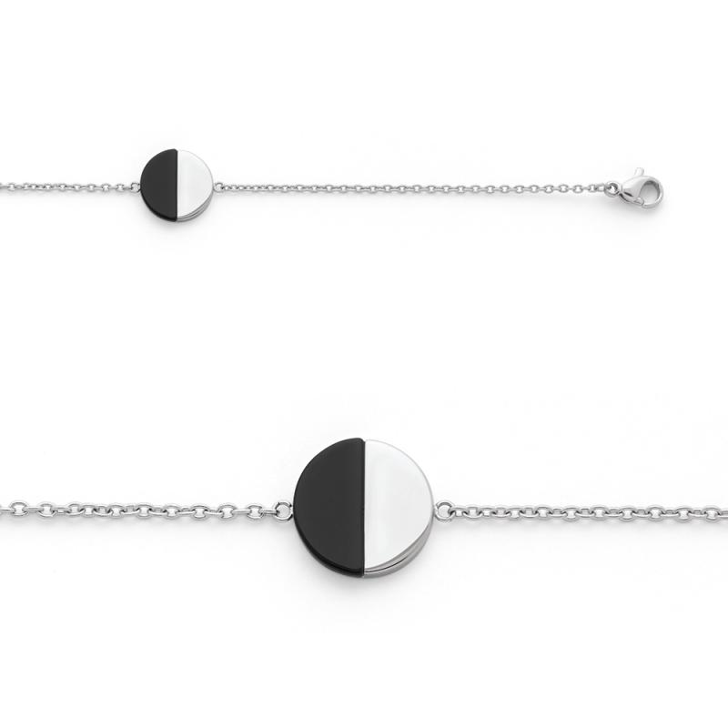 Bracelet acier avec agate noire réglable de 15 à 19 cm