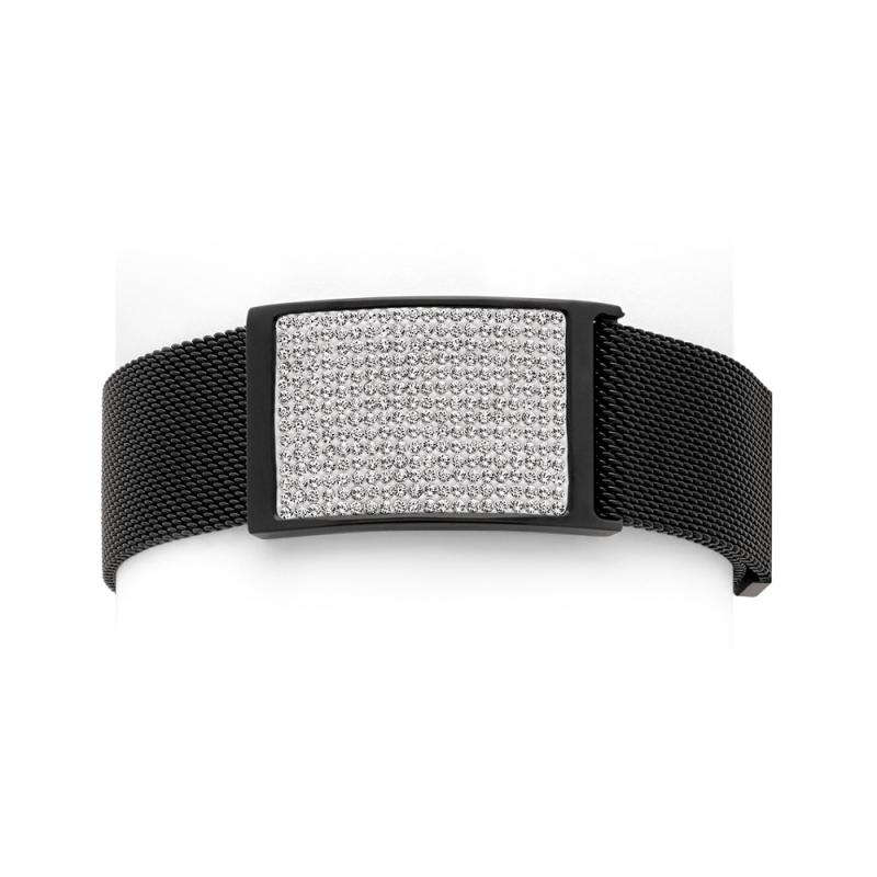 Ce ravissant bracelet noir de la collection Intemporelle donnera à votre look un côté raffiné et subtil. Réalisé en acier inoxydable, le bracelet est composé d'une plaque couverte de cristal scintillant. Ajustable au poignet, le bracelet en acier dispose d'un fermoir aimanté facile à manipuler.