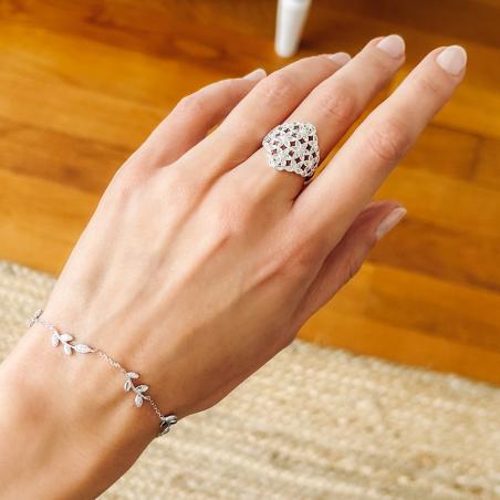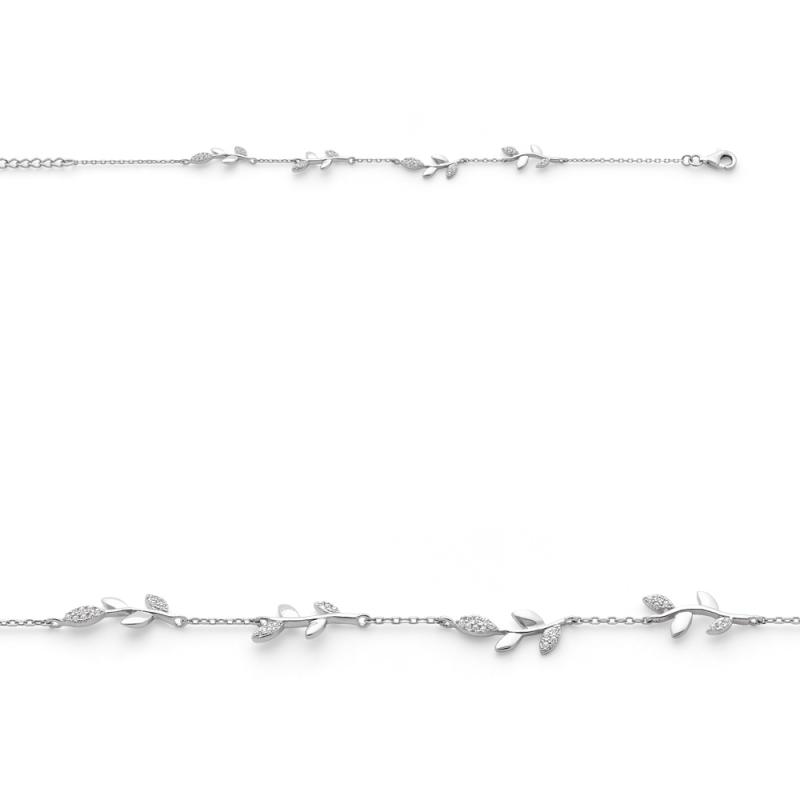 Réglable de 16 à 20 cm, le bracelet en argent de la collection Passiflore est orné de feuilles dont certaines sont serties de zirconias. Bijou d'une belle finesse et d'un design bien travaillé ce bracelet inspire la tendresse et la douceur. Il sera parfait en parure avec le collier ou les boucles d'oreilles.