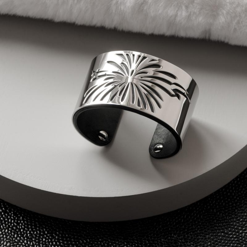 Vous avez une préférence pour les bijoux de grande taille ? Craquez alors pour ce bracelet manchette en acier de la collection Evening pour mettre en valeur votre forte personnalité. Son motif mis en valeur par un fond noir en imitation cuir lui donne du caractère. Affirmez votre côté rebelle avec cette manchette moderne et rock.