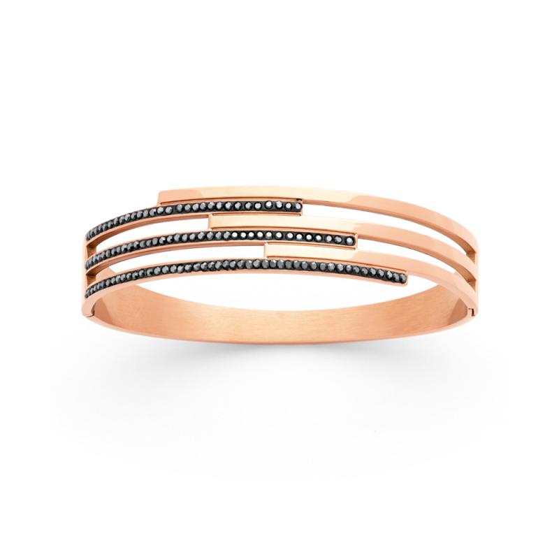Les bijoutiers n'ont pour seules limites que leur propre créativité. Et avec ce bracelet rigide de la collection Sofia ils se sont dépassés. Le succès est garanti grâce à l'association de l'acier rose et du cristal noir. Ce bracelet s'ouvre sur le côté pour pouvoir l'enfiler facilement et fait 60 mm de diamètre.