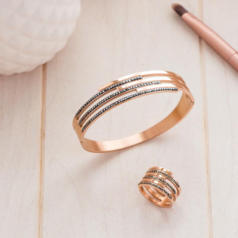 Bracelet acier rose avec cristal diamètre 60 mm