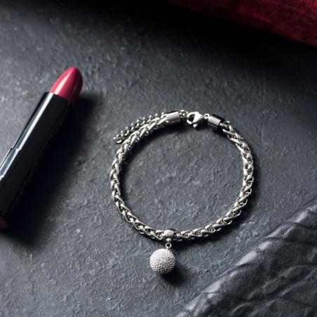 Réhaussez votre look avec ce magnifique bracelet de la collection Charme. Sa chaîne en acier inoxydable intemporelle et glamour arbore une jolie sphère sertie de pierres de cristal blanc scintillant. Réglable de 16 à 20 cm, le bracelet peut parfaitement s'ajuster à tous les poignets de la gent féminine.