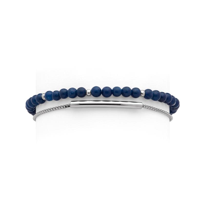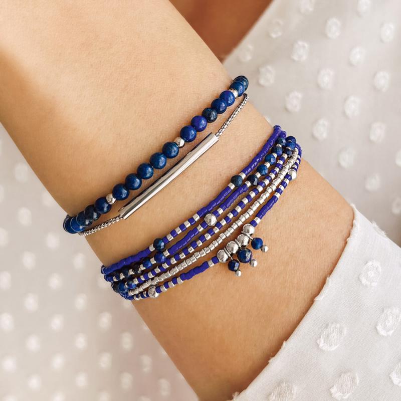 La couleur froide de l'acier et le bleu chaleureux et profond du lapis-lazuli reconstitué se conjuguent à merveille dans ce bracelet de la collection Patience. Succession de perles d'acier et de perles de lapis-lazuli reconstitué ce bracelet sera un cadeau parfait. Ce bijou dispose d'une fermeture réglable de 16 à 20 cm.