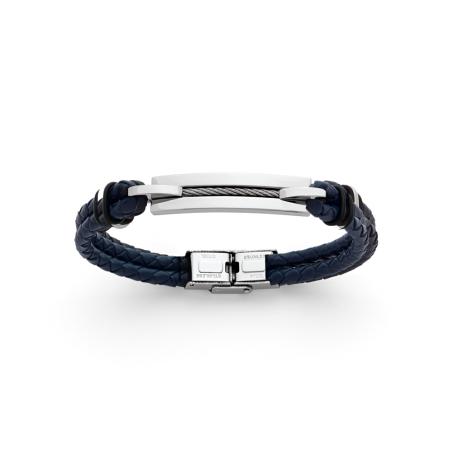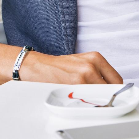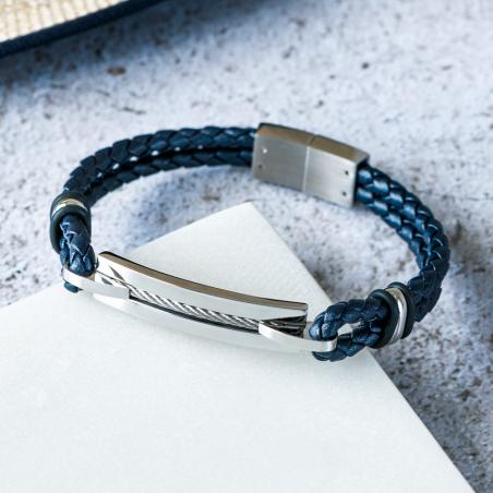Bracelet acier et croûte de cuir réglable de 20 à 21 cm