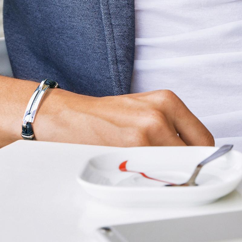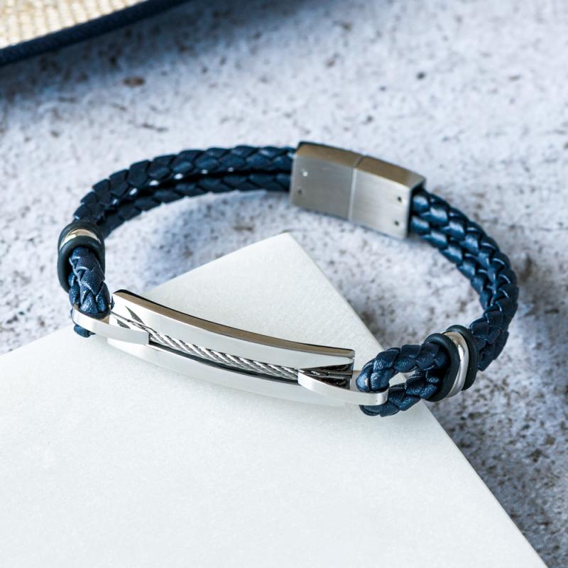 Parfait pour toutes les occasions, le bracelet en acier et croûte de cuir réglable de 20 à 21 cm est un accessoire pour l'homme qui aime les belles choses. plaqué en acier travaillée et cordons de cuir tressé, ce bracelet offre une multitude de détails. Moyen efficace pour asseoir sa virilité, ce bracelet bi-matières sera parfaitement assorti à tous les styles.