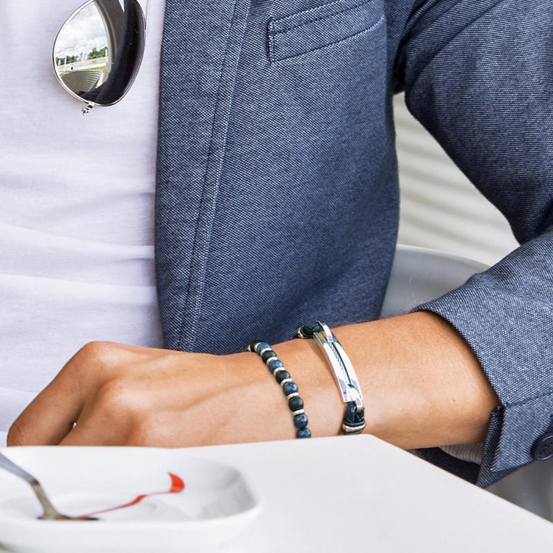 Plus qu'un simple bijou, le bracelet en acier et agate bleue se révèle être un accessoire de bien-être. La force de l'acier et la paix intérieure sont combinées dans un seul bijou pour habiller le poignet masculin. Ce bracelet de la collection Gentlemen est ajustable, il se porte au quotidien quel que soit votre style.