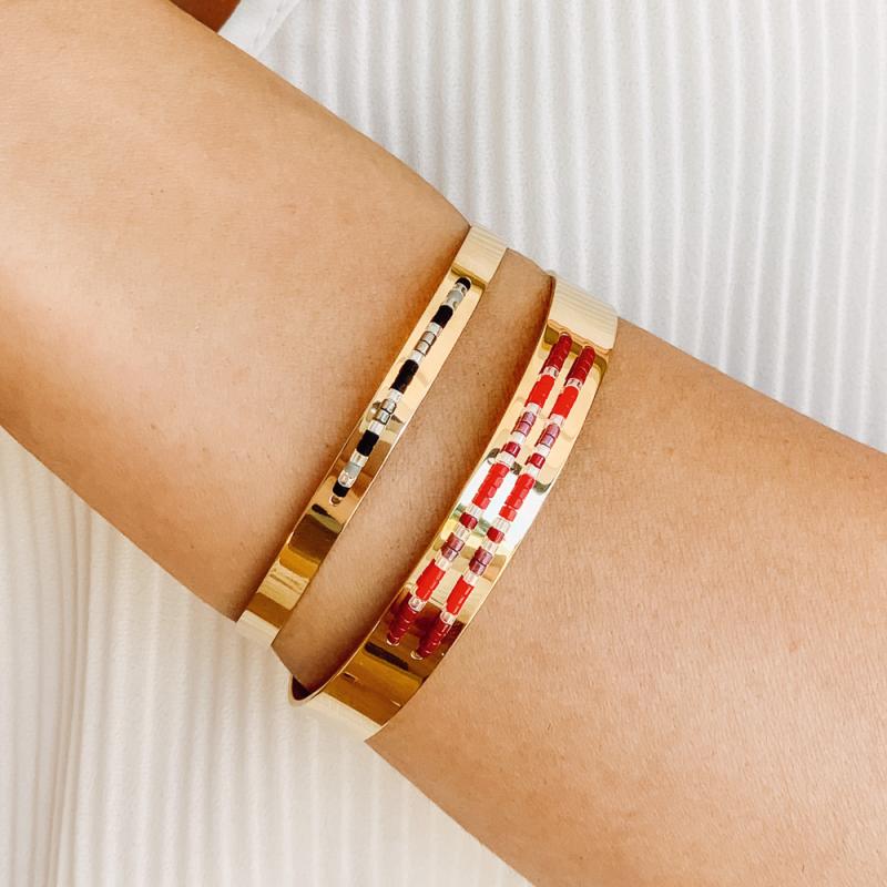 Bracelet rigide acier doré avec miyuki diamètre 60 mm