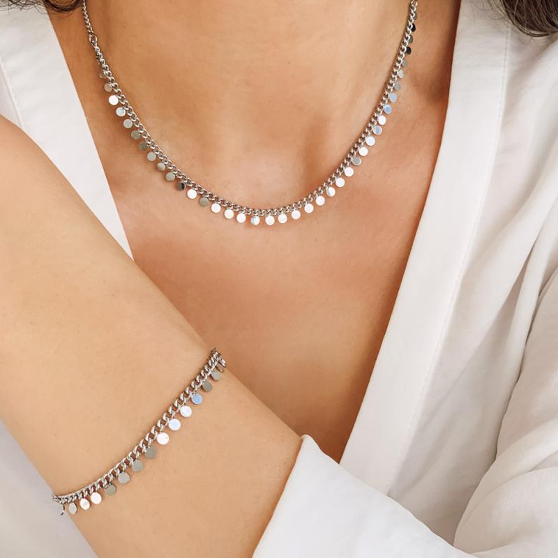 Ce bracelet en acier constellé de mini breloques est inspiré des bijoux orientaux, légers, faciles à porter et qui bougent avec vos mouvements. La collection Jasmine de laquelle il est issu porte alors bien son nom. Dansez jusqu’au bout de la nuit avec un bracelet imaginé pour la femme pleine de gaieté que vous êtes. Il est réglable de 16 à 19 cm.