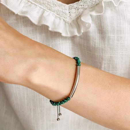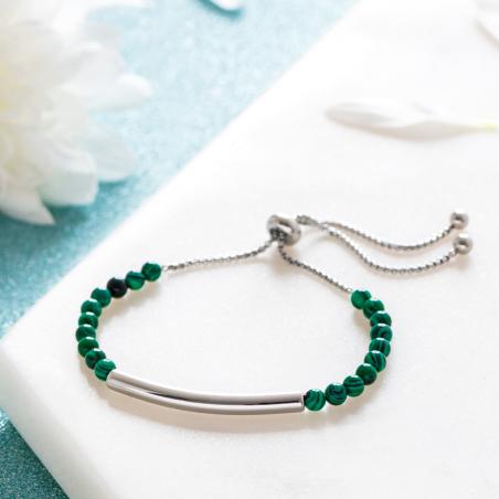 Bracelet acier avec malachite reconstituée réglable de 16 à 20 cm